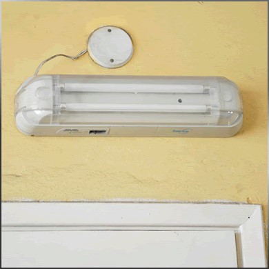 Deve haver uma fonte de iluminação de emergência automaticamente recarregável, que deve ser capaz de alimentar pelo menos duas lâmpadas de igual potência, instalada dentro da casa de máquinas, a fim de garantir a iluminação desse ambiente em situação de falta de energia.