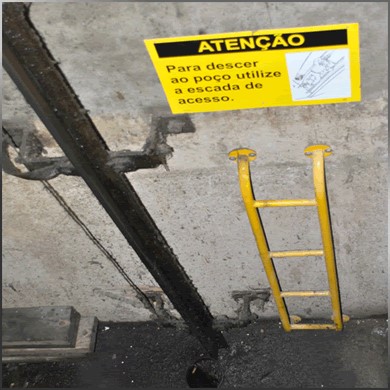 Na parte superior da cabina é instalado o guarda corpos com suporte para a prevenção de acidentes, evitando a queda durante as inspeções e manutenções.
