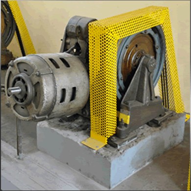 Protege técnicos quando eles acessam a casa de máquinas, evitando ferimentos ocasionados por esbarrões na polia, no cabo de aço ou em qualquer parte móvel da polia de tração